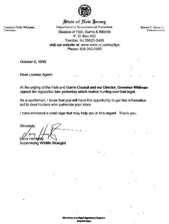 supplied by NJDFG&W regulations digest page 19