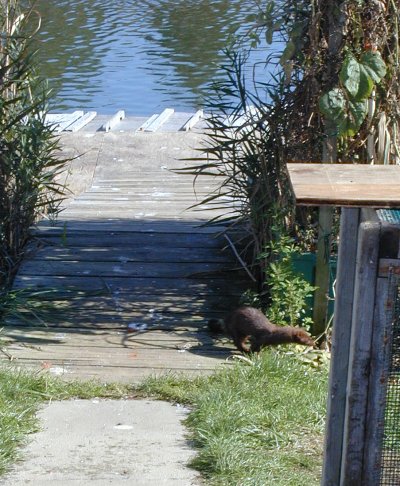 10/21/02 The mink as he come up into the yard from the dock, first picture taken. |