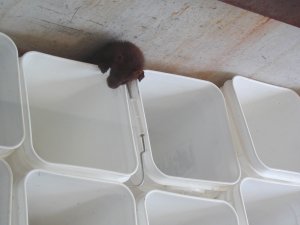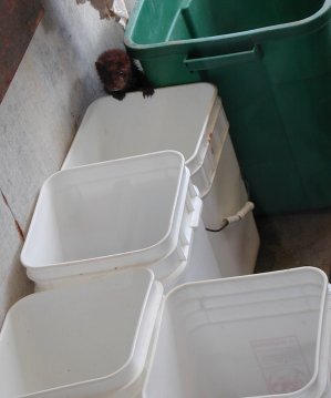 | We have a new visitor. We don't know if we will see him again, but this furry fellow helped himself to some eels while he was here. | ||||||||