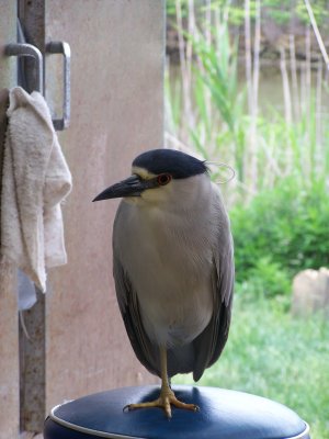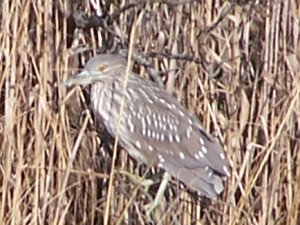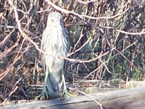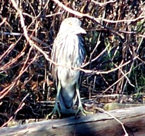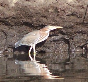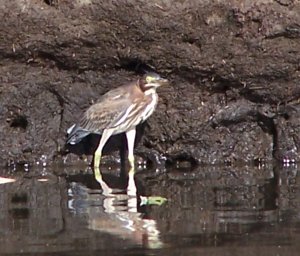 | Green Heron along the sodbanks in our lagoon. Tom's quick camera work caught her today. | ||