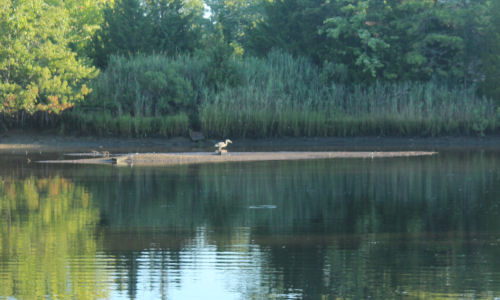 | Enjoying the low tide on the sand bar and pretending he's a cat in a box? | ||