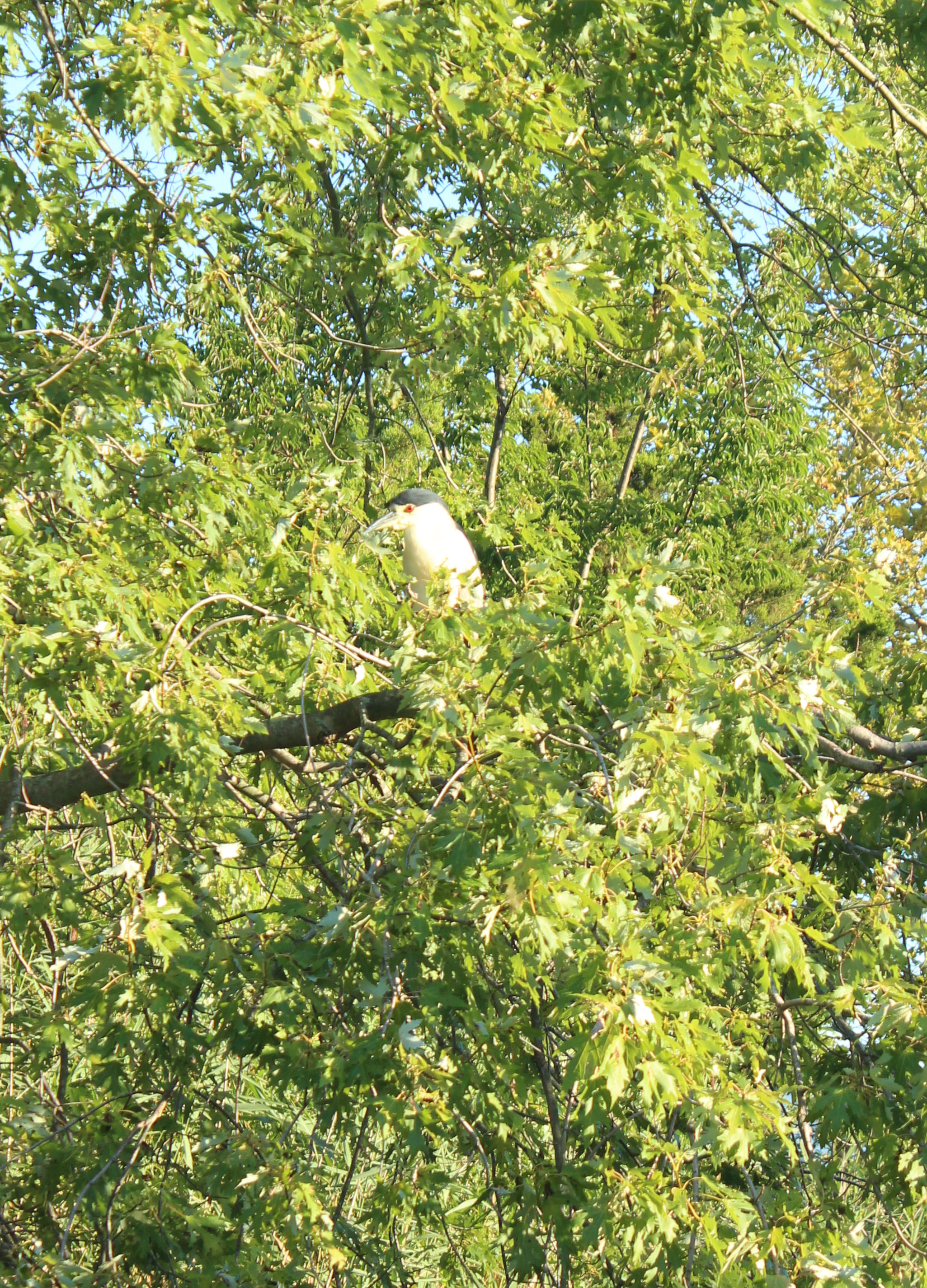 | One of the adult black crowned night herons roosting in the tree. | ||